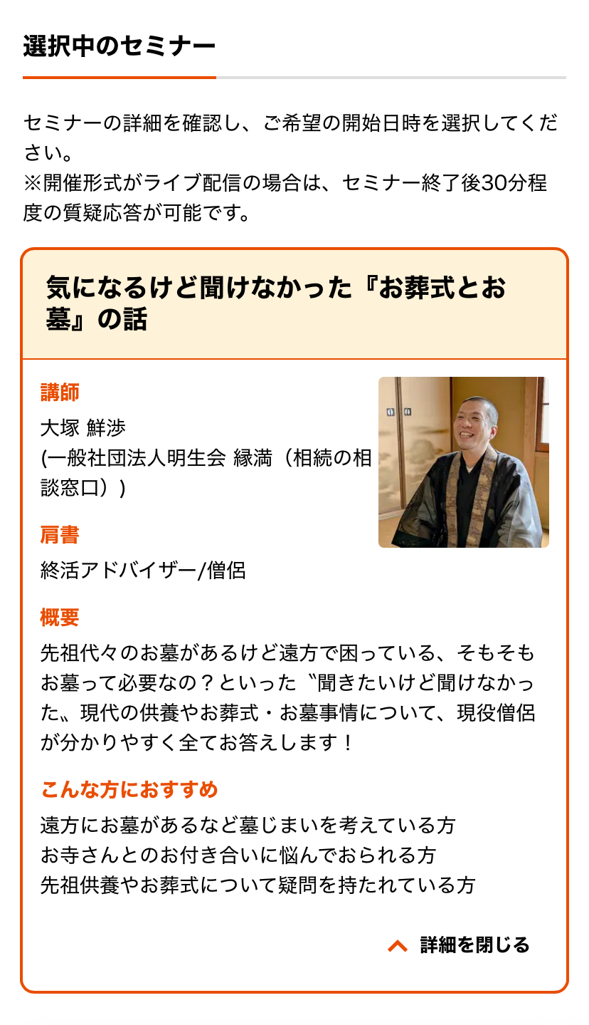 より多くの方に見ていただけるよう、終活セミナーが少しだけ時間を短縮した50分のショートVer.となり、1日2回の時間帯で予約配信されるようになりました😊